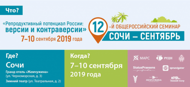 Сочи 2019. XII Общероссийский научно-практический семинар «Репродуктивный потенциал России: версии и контраверсии» и X Всероссийская научно-практическая конференция «ГЛАВВРАЧ XXI века»